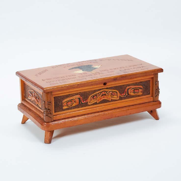 RED CEDAR CHIEF’S STORAGE BOX WITH SISIUTL MOTIF MADE BY A CARVER OF THE NISGA’A NATION, 1952