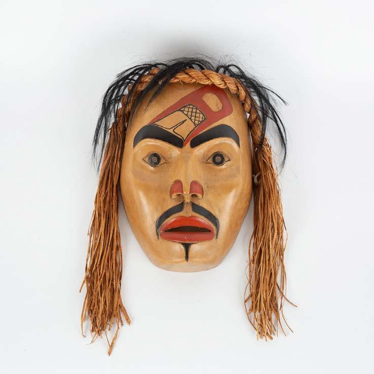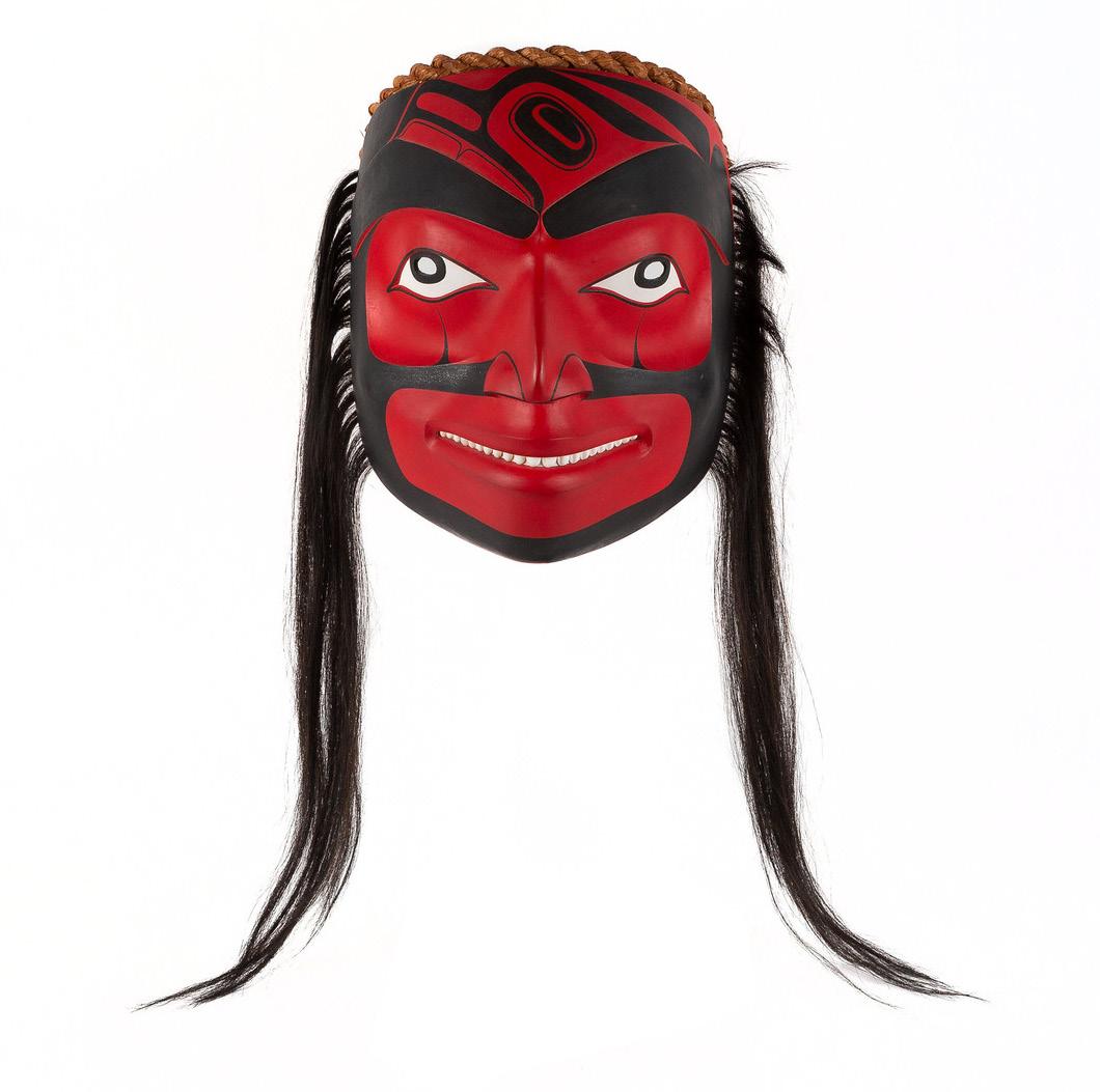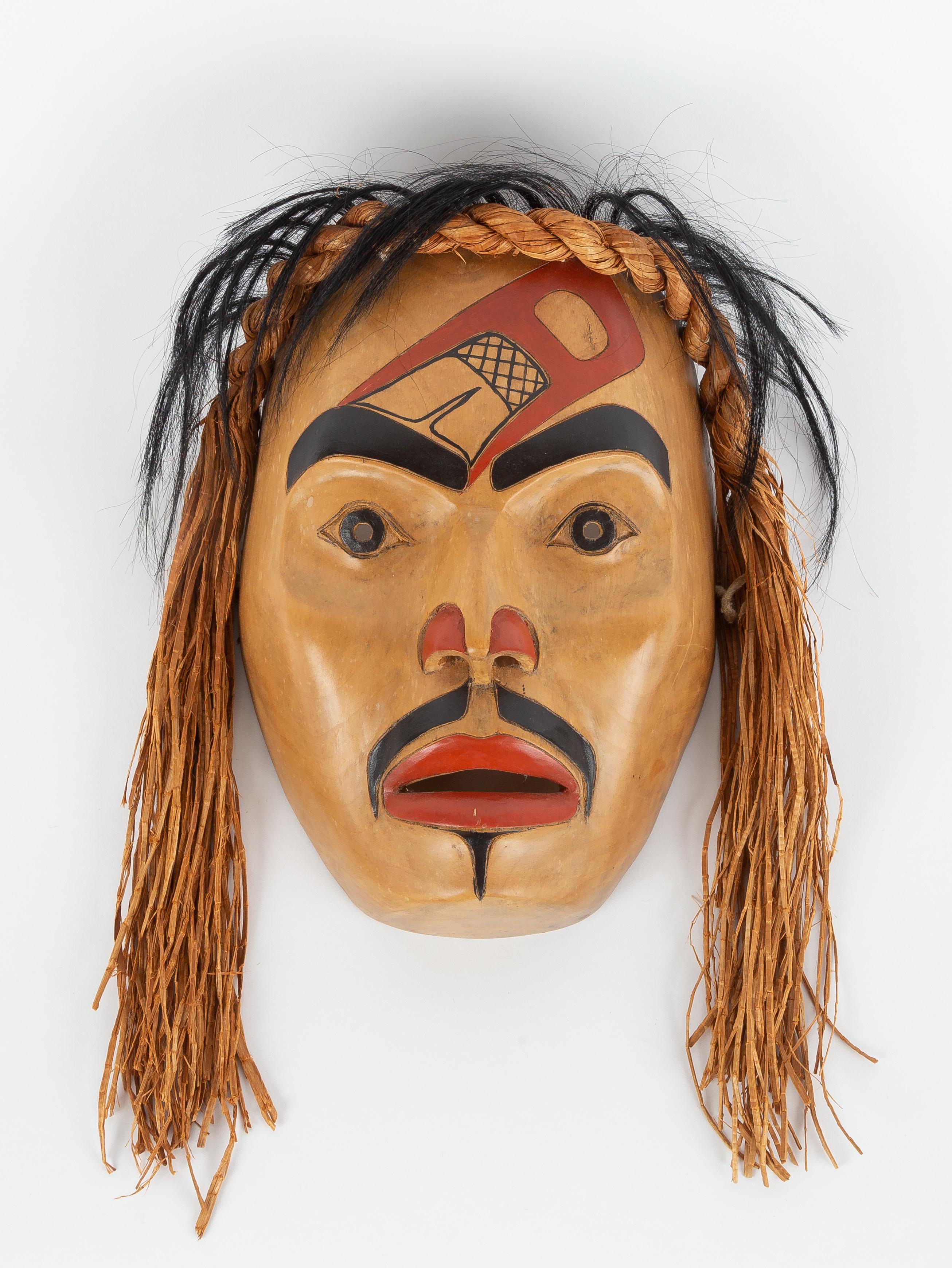 ROBERT CHARLES DAVIDSON (B.1946) EAGLE OF THE DAWN (G_UUD SANS GLANS) DANCE MASK, 1992 acrylic paint on paper mache, operculum shell, human and cedar bark; signed and dated 1992, 6/6 not including hair 12 10 30.5