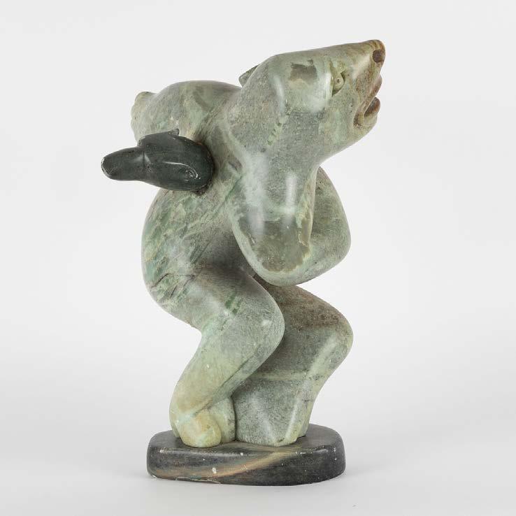 DANCING BEAR stone; signed in syllabics and dated 1999 13 x 10 x 6 in — 33 x 25.4 x 15.2 cm