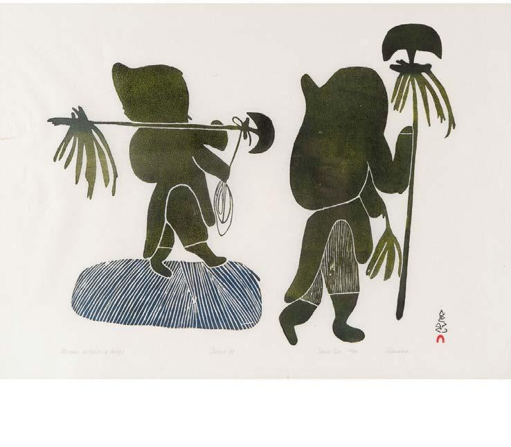 WOMEN COLLECTING KELP stonecut; 1967, 26/50