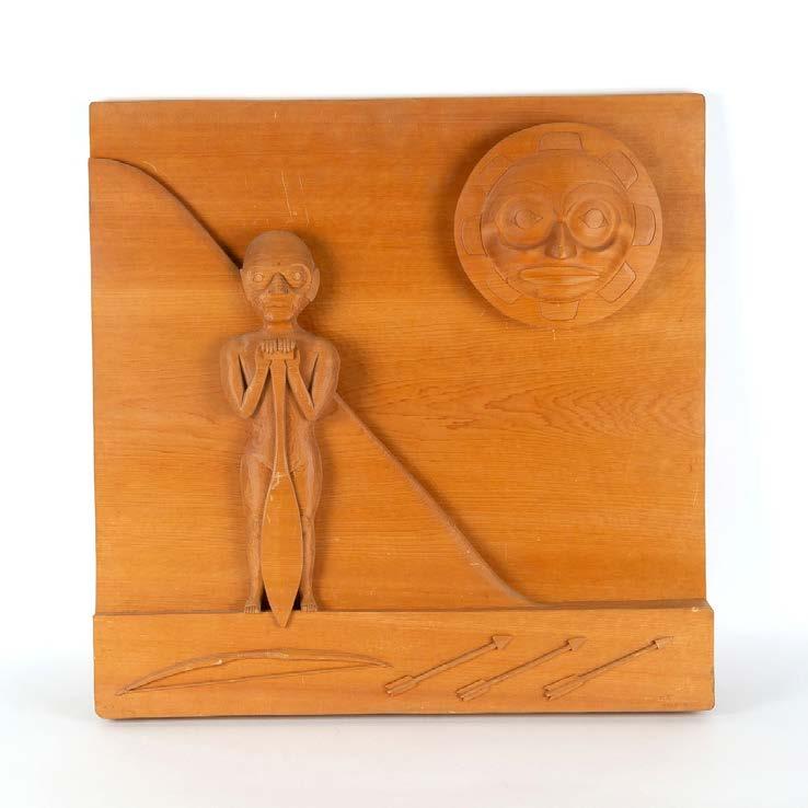 LYLE WILSON (B.1955), HAISLA CEDAR PANEL cedar; signed 24 x 24 x 3.1 in — 61 x 61 x 8 cm
