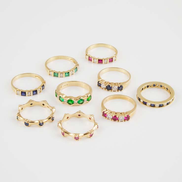 10 X 14K YELLOW GOLD RINGS set with synthetic stones, 55.3 grams $1,200 — 1,500