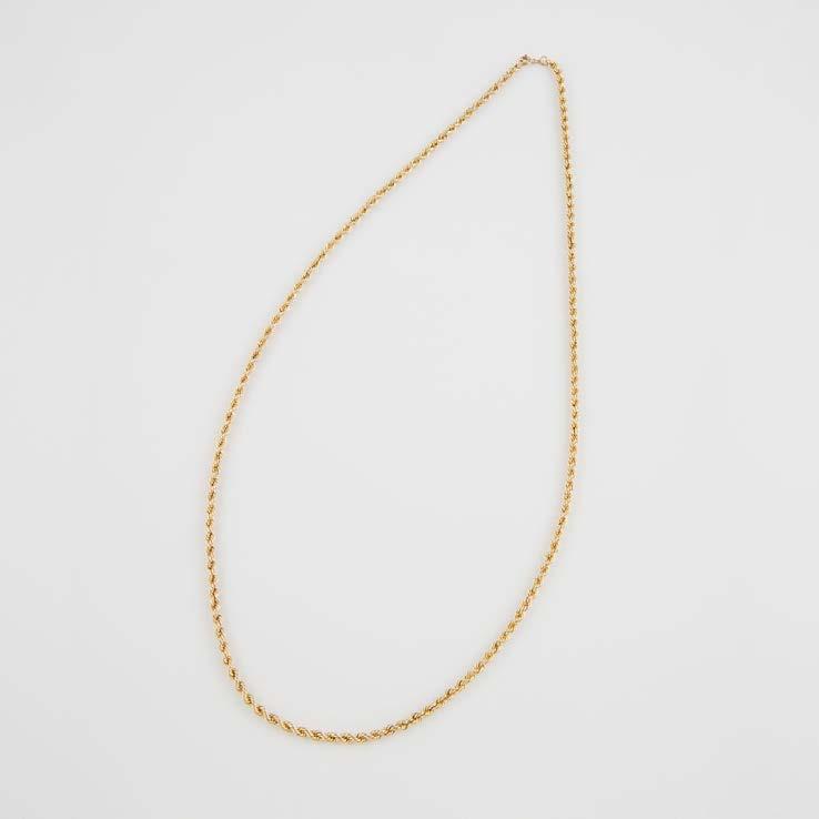 ITALIAN 18K YELLOW GOLD CHAIN with rope twist and elongated oval links, w. 3.5mm length 17.5 in — 44.5 cm, 8.7 grams $350 — 450
