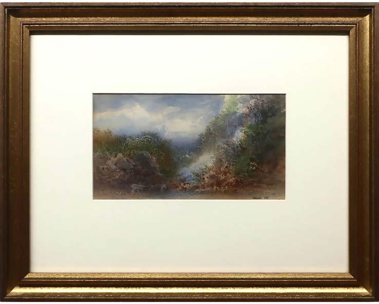 19TH CENTURY CANADIAN; UNIDENTIFIED ARTIST (20TH CENTURY) RIVER STUDY; TEEPEES; WATERFALL; SRI NISARGADATTA MAHARRAJ FOUR WORKS: FORMER - THREE WATERCOLOURS, SET IN ONE FRAME; LATTER - WATERCOLOUR AND PENCIL; INITIALED ‘GOA’ LOWER RIGHT; TITLED AND DATED JAN 1/2000 LOWER LEFT