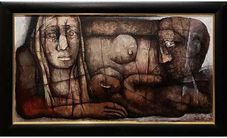 TWO MIXED MEDIA (stone, brass wire, oil on paper) SET IN ONE FRAME; SIGNED Sonya S***** AND DATED ‘98