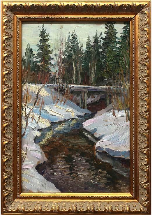 UNIDENTIFIED ARTIST (20TH CENTURY) UNTITLED (WINTER CREEK STUDY WITH FOOT BRIDGE)