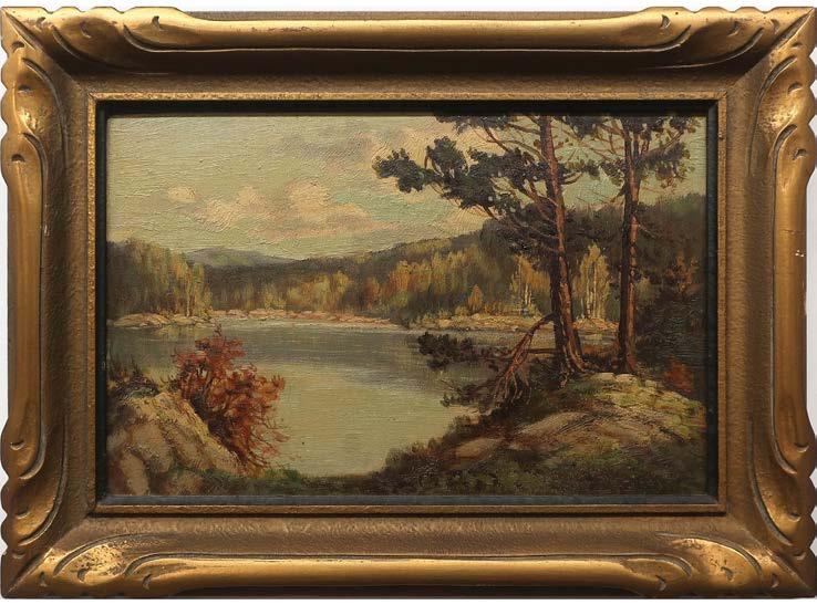 OTTO PLANDING (CANADIAN, 1887-1964) TEMAGAMI - NEAR THE MOTHER CAMP OIL ON HARDBOARD; SIGNED LOWER RIGHT