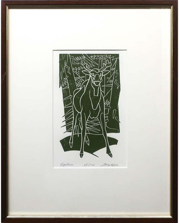 LINOCUT; SIGNED, TITLED AND NUMBERED 25/100
