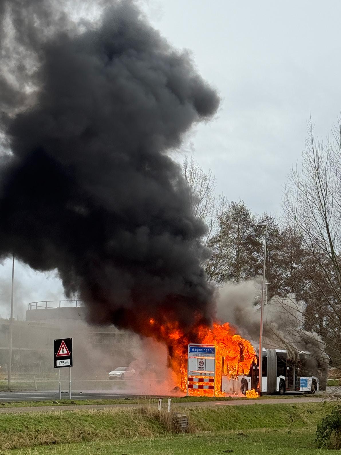 Vlak naast de rotonde bij de campus vatte vorige week donderdag een regionale lijnbus vlam. Het betrof een lange, gelede bus (ook wel bekend als harmonicabus of accordeonbus) die vrijwel volledig uitbrandde. Passagiers en chauffeur konden tijdig uitstappen; niemand raakte gewond. De brandweer was vlot ter plaatse en zette twee blusvoertuigen in. De brand trok behoorlijk wat bekijks vanaf de campus en zorgde vanwege de afsluiting van de Mansholtlaan voor een chaotische avondspits. Over de oorzaak kon een woordvoerder van vervoerder Rrreis nog niets zeggen. me