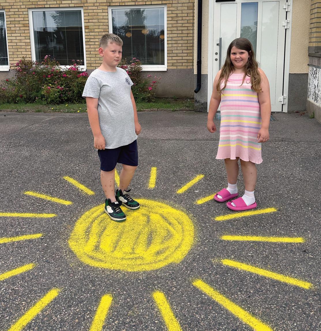 – Alla får vara med när vi spelar, säger Melker. Ibland när jag ser en kompis som står själv kan det vara svårt att veta om kompisen vill vara ensam ett tag eller egentligen vill vara med och leka men inte vågar fråga. Därför är det bra att vi har en kompis-sol på skolgården! Om man vill ha någon att leka med så ställer man sig på kompis-solen och då vet alla andra att man känner sig ensam och behöver en vän. Det borde finnas kompis-solar överallt!