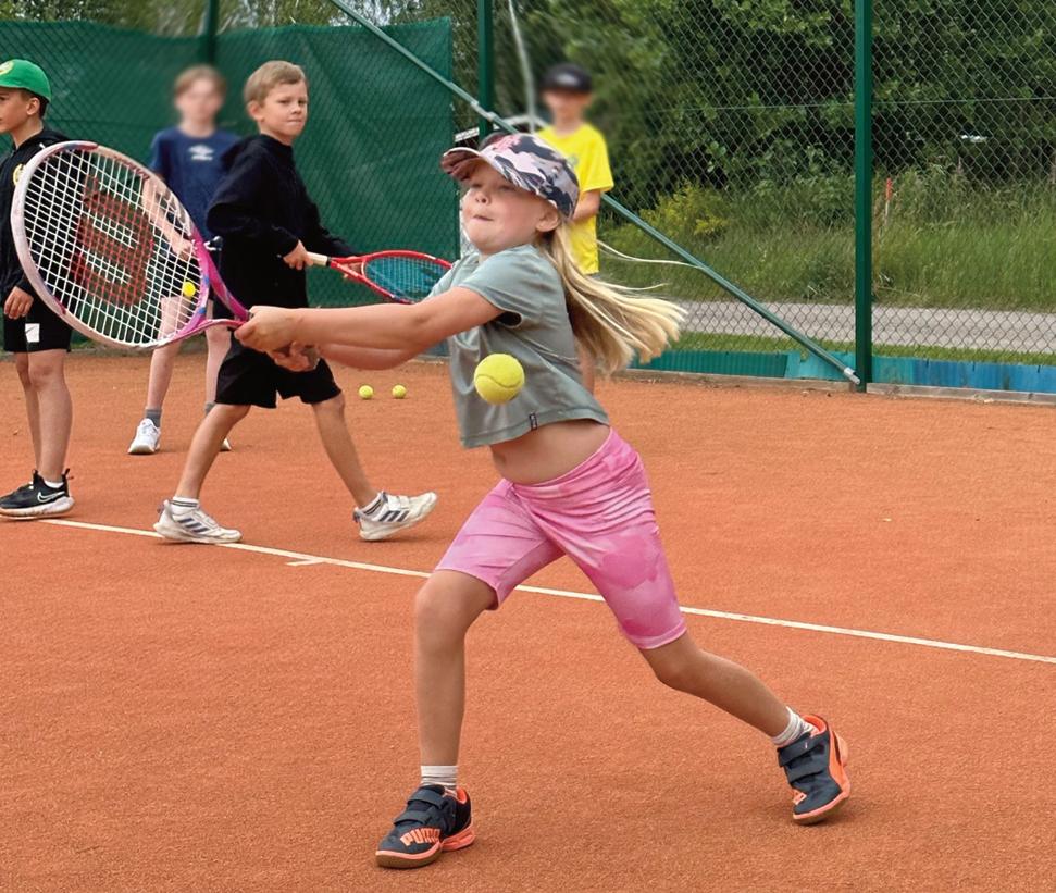 – Vi vill introducera sporten på ett roligt och lättsamt sätt, säger Emilia. Fokus ligger inte på att lära ut alla regler, syftet är i stället att barnen under lekfulla former får prova på att spela och lära sig det mest grundläggande inom tennis. Banan här vid Gösjön är jättefin och vi använder tennisutrustning som är anpassad till barn.
