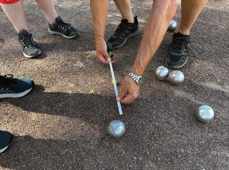 När kaffet är urdrucket och tårtan uppäten är det dags för en andra omgång boule och det sju personer starka gänget plockar åter fram sina metallklot och tävlingsinstinkten.