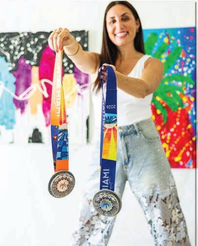 “I remember visiting New York City as a kid and being completely mesmerized by street artists’ drawing,” she tells AQUA Miami. “I could have stood there all day watching them work.” Einhorn still has the letter an art teacher wrote to her praising her talent, encouraging her to apply to a magnet art program, and suggesting that Einhorn might one day be a professional artist. “It’s pretty amazing,” Einhorn—whose whimsical, imaginative work as a painter, muralist, portraitist, and designer of the 2026 Miami Marathon medals and ribbons has garnered coverage from NBC, CBS, E! Bravo, and more—says, “to see that prediction come full circle.”