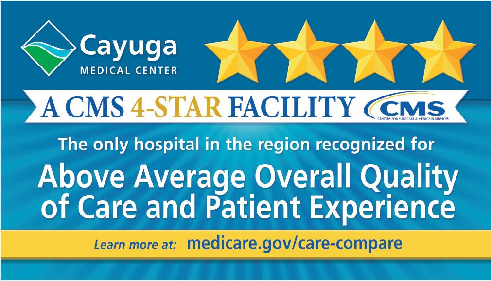 Cayuga Medical Center (CMC) was recognized as a four-star hospital by the Centers for Medicare and Medicaid Services (CMS). In addition, CMC received four stars for patient experience. CMC is the only healthcare facility in the region to receive four stars or better for both the overall and patient experience scores.