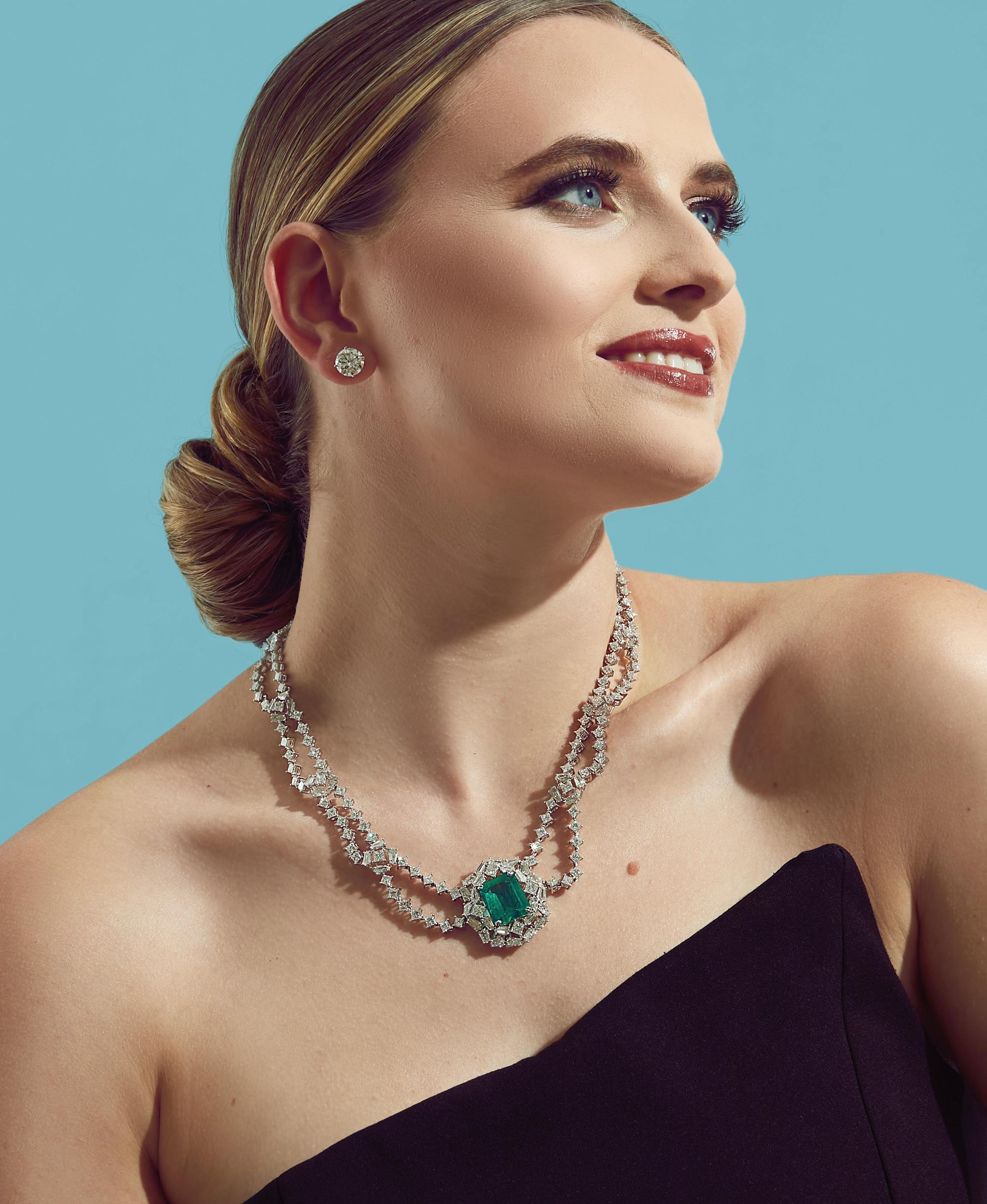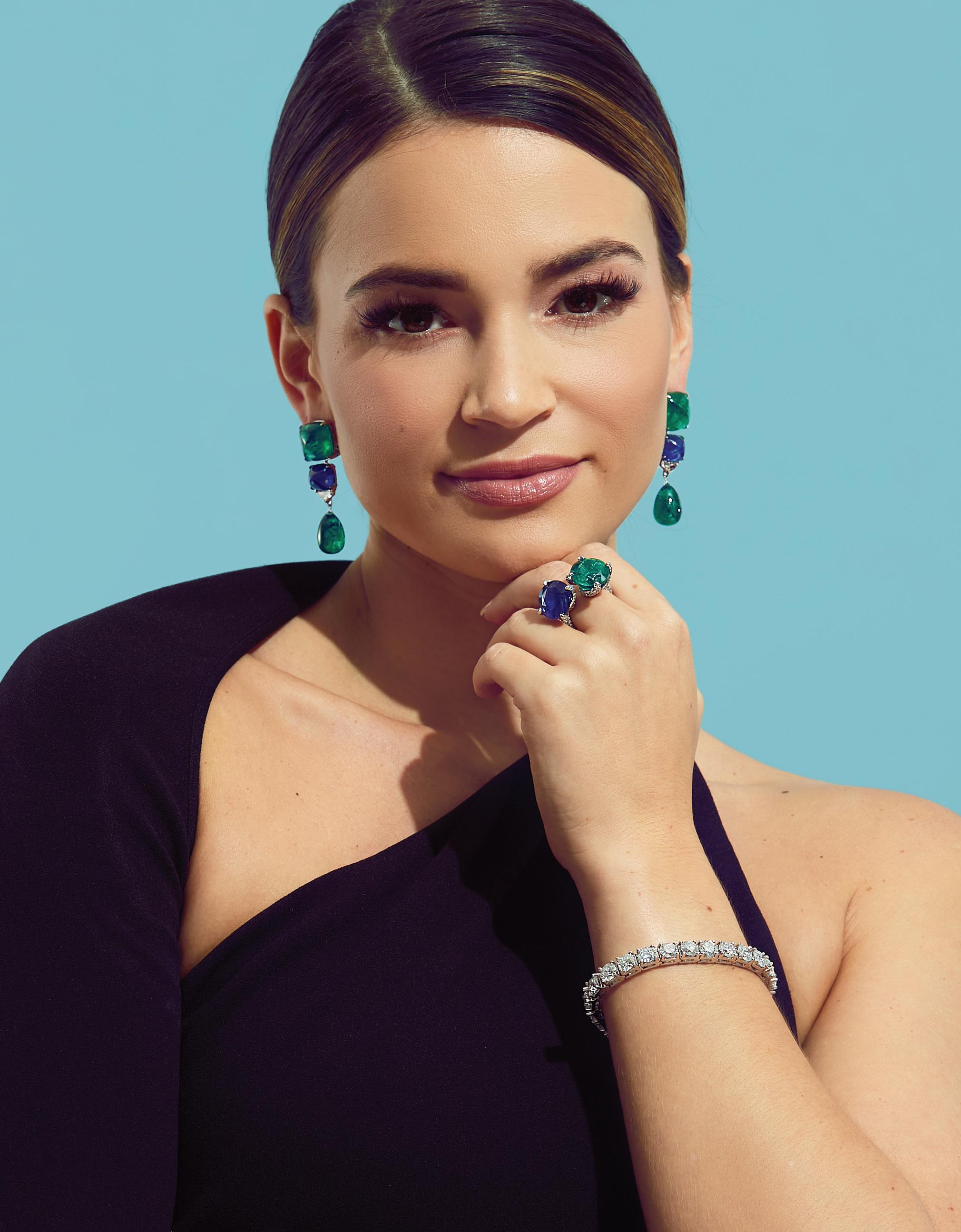67 PIRANESI EMERALD & SAPPHIRE EARRINGS $225,400 RING $128,800 CÉLESTE LAB-GROWN DIAMOND LINE BRACELET TOTALING 25.70CT $86,390