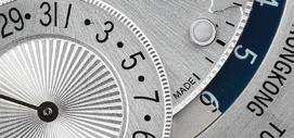 Besides being able to accommodate both mechanisms in the same case, the functions also had to interact, so that the displayed date corresponded to local time, and adjust whenever the time zone was corrected. To address this, Patek engineers redesigned the Travel Time function to control the Annual Calendar function with the local-time hour-wheel driving the calendar though its basic principles remain. It features two hour hands from the center—a solid hand for local time and a pierced hand for home time—but the two common time zone pushers, which are usually located in the left-hand case flank, have now been replaced with a winding-stem setting mechanism that has three positions. The user pulls the crown to the middle position and turns it clockwise or counterclockwise to adjust the local time hour hand in one-hour increments in either direction without affecting the rate of the movement. Setting the time in the home time-zone and utilizing the stop-seconds mechanism are accomplished with the crown in the outermost position.