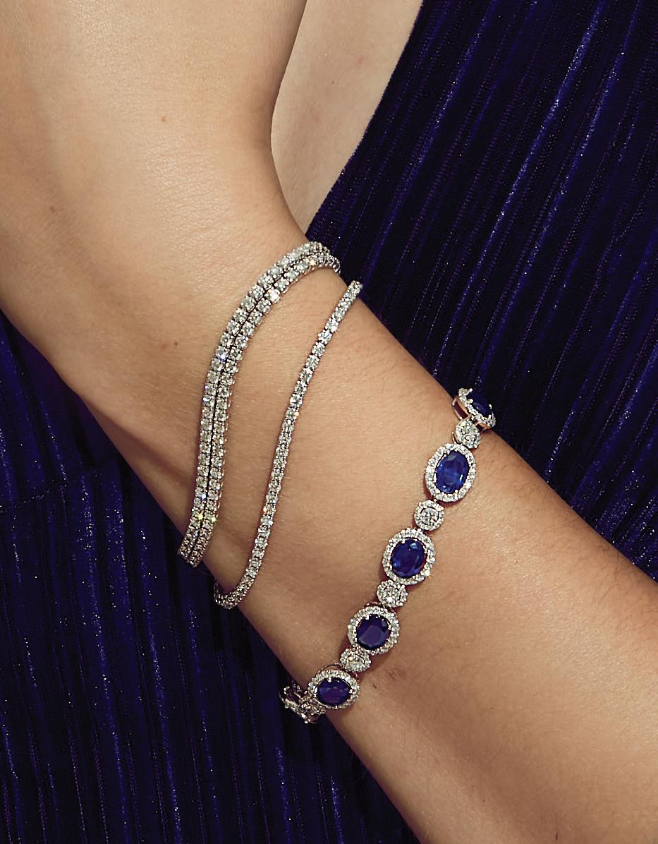 85 DIAMOND CELLAR SAPPHIRE & DIAMOND RING TOTALING 5.0CT $54,314 DIAMOND CELLAR FLOWER CLIMBER CUFF EARRINGS $15,700 RAHAMINOV 3 STRAND DIAMOND LINE BRACELET $24,240 RAHAMINOV DIAMOND STATION NECKLACE TOTALING 11,41CT $66,340 PIRANESI BLUE SAPPHIRE & DIAMOND BRACELET $33,810