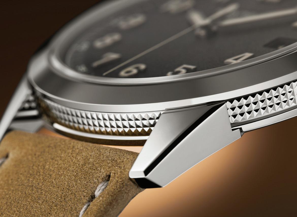 The watch’s vintage-style dial was crafted by Cadrans Flückiger in Saint-Imier, a dial specialist belonging to Patek since 2004. The textured, charcoal-gray dial is reminiscent of the housing of old photo cameras and features a black gradient rim and gold applied numerals with a beige luminescent coating, the first time the brand has used this particular color.
