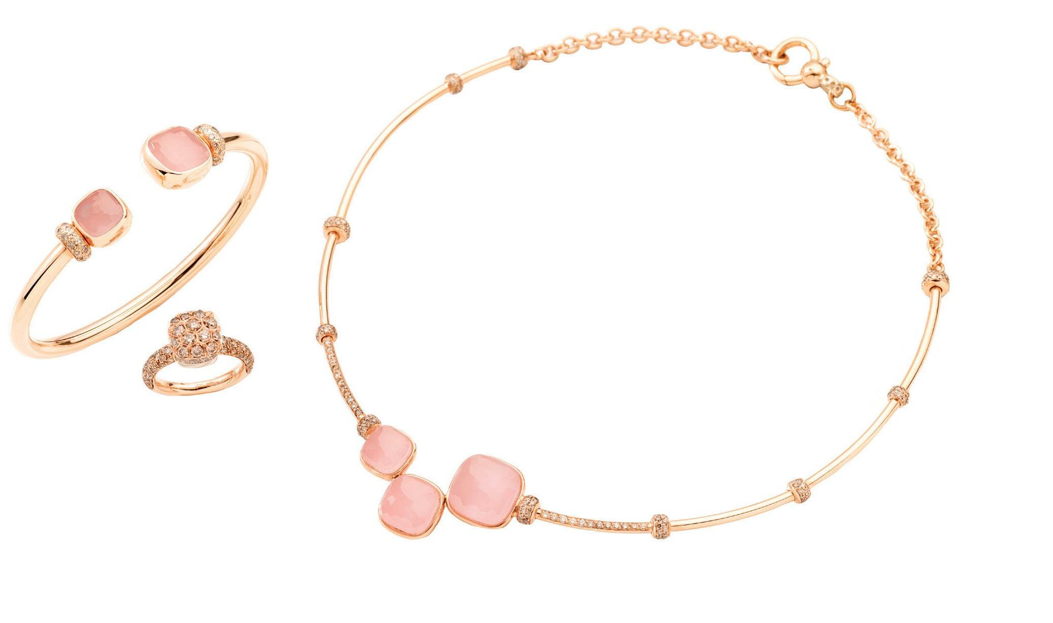 BELOW: Jennifer Hudson was pretty in pink at the 2022 SAG Awards, to which she wore a pair of rose gold Padparadscha sapphires, imperial topaz and pink sapphire earrings from Pomellato’s La Gioia di Pomellato High Jewelery Collection. She finished off the look with the brand’s Nudo rings in rose gold with rose quartz.