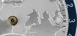 10th Anniversary Edition. Two versions, both with a deep blue dial representing the oceans of the central planisphere and set on a navy genuine alligator strap. The one to the left comes on a stainless steel case and is limited to 1,888 pieces, while the one above is on an 18K rose gold case and is limited to 88 pieces.