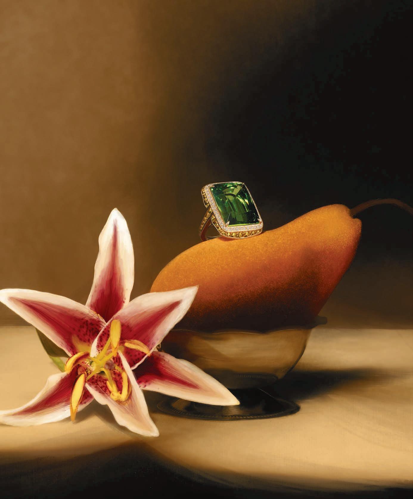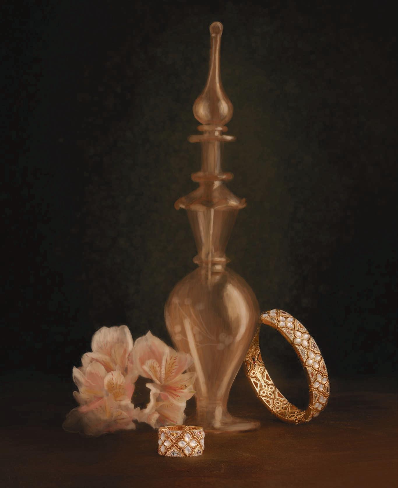 One important decision we made was to leave the jewelry itself crisp and unpainted. By preserving its true detail and brilliance, the pieces remain the focal point of each composition. The contrast between the painterly surroundings and the untouched jewelry helps highlight what matters most: the craftsmanship of the piece itself.