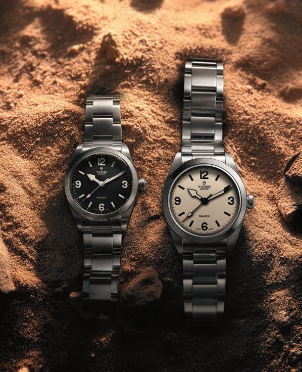 brushed stainless-steel, satin-finished case, arrow-shaped optional Dune White numerals at the 3, 6, 9 and 12 positions, the Tudor Ranger is both robust and beautiful and wearer seamlessly from work to weekend.