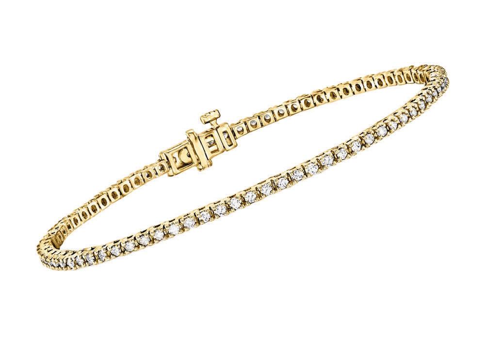 Solitaire Diamond Ring, 3.01 cts., $109,000; Eternity Band, 2.69 cts., $12,100; Alternating Diamond Eternity Band, 3.57 cts., $19,500; Mixed Diamond Line Bracelet, 12.79 cts., $72,000; Diamond Line Bracelet in 18K White Gold, 6 cts., $22,605; In-and-Out Diamond Hoop Earrings in 18K White Gold, 6.15 cts., $22,100. All in platinum unless otherwise noted.
