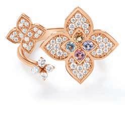 Clockwise from left: 18K Rose Gold Venetian Princess Carnival Pavé Diamond and Mixed Stones (Blue Topaz, Citrine, Rubellite and Tanzanite) Large Open Flower Necklace, $19,300; 18K Rose Gold Venetian Princess Carnival Pavé Diamond and Mixed Stones (Tanzanite, Blue Topaz, Rubellite and Citrine) Double Flower Climber Earrings, $9,230; 18K Yellow Gold Venetian Medallions Small Diamond and Mother of Pearl Necklace, $3,260 18K Yellow Gold Love In Verona Diamond and Black Enamel Bangle, $9,990; 18K Yellow Gold Love In Verona Diamond and White Enamel Ring, $4,100 18K Yellow Gold Love In Verona Diamond Black Enamel Ring, $4,100; 18K Yellow Gold Principessa Diamond and Flower Link Bracelet, $2,100; 18K Rose Gold Venetian Princess Carnival Pavé Diamond and Mixed Stones (Tanzanite, Blue Topaz, Rubellite and Citrine) Large Triple Flower Ring, $7,810; 18K Yellow Gold Venetian Medallions Small Diamond and Black Jade Stud Earrings, $4,680; 18K Yellow Gold Venetian Medallions Small Diamond and Mother of Pearl Reversible Ring, $4,040. All prices are subject to change.