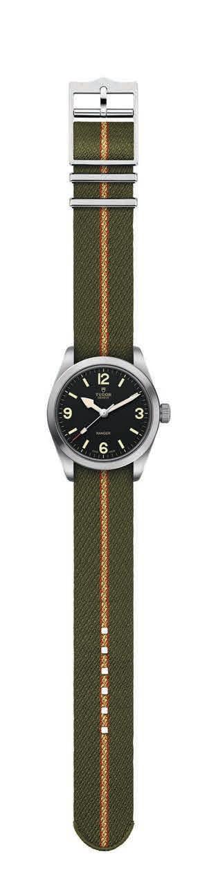 Powered by the Manufacture Calibres MT5400 the 36-millimeter and the MT5402 in the 39-millimeter, the Ranger line is designed to enrobustness, longevity, reliability and precision. movements boast a 70-hour power reserve, makwatch weekend-proof. In other words, the wearthe watch off on a Friday evening and put it Monday morning without ever having to wind or time. Both sizes are available on either a satinstainless-steel bracelet with a Tudor T-fit clasp length adjustment or a single-piece, earth-tone, strap woven in France on 19th century Jacquard the Julien Faure company. Waterproof to 330 Ranger line begins at $3,350.