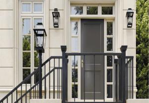 We’re seeing a blend of classic shapes mixed with contemporary lines. Traditional sconces or octagonal lanterns with beveled glass are always a favorite with our customers. At the same time, there’s growing interest in streamlined designs with clean straight lines for a more modern look. Black continues to dominate as the goto finish for its timeless appeal and its ability to complement a wide range of home exterior colors, from crisp white siding to natural wood tones and even the varying shades of blue that have become so popular.