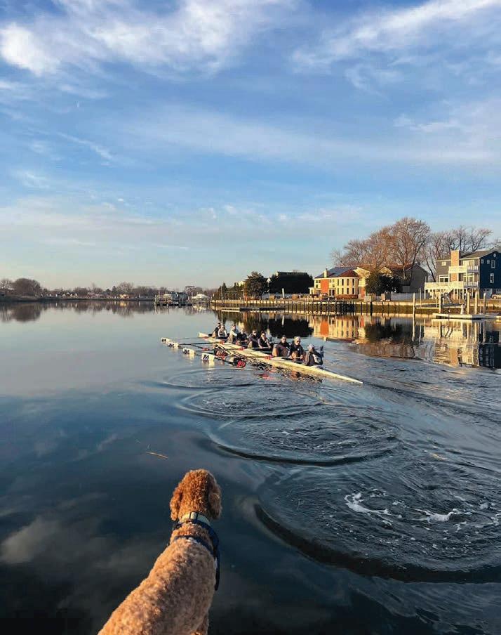 “I’m the head coach of Monmouth University’s rowing team. This picture was taken on Branch Port Creek in Oceanport on the Shrewsbury River, during one of our first practices of the season. Gryff, my dog, loves to watch the team. Everything came together perfectly—the colors, the timing of the rowing, the flat water and the blue skies. It’s a combination of all the things I love: time on the water, Monmouth rowing and Gryff.”