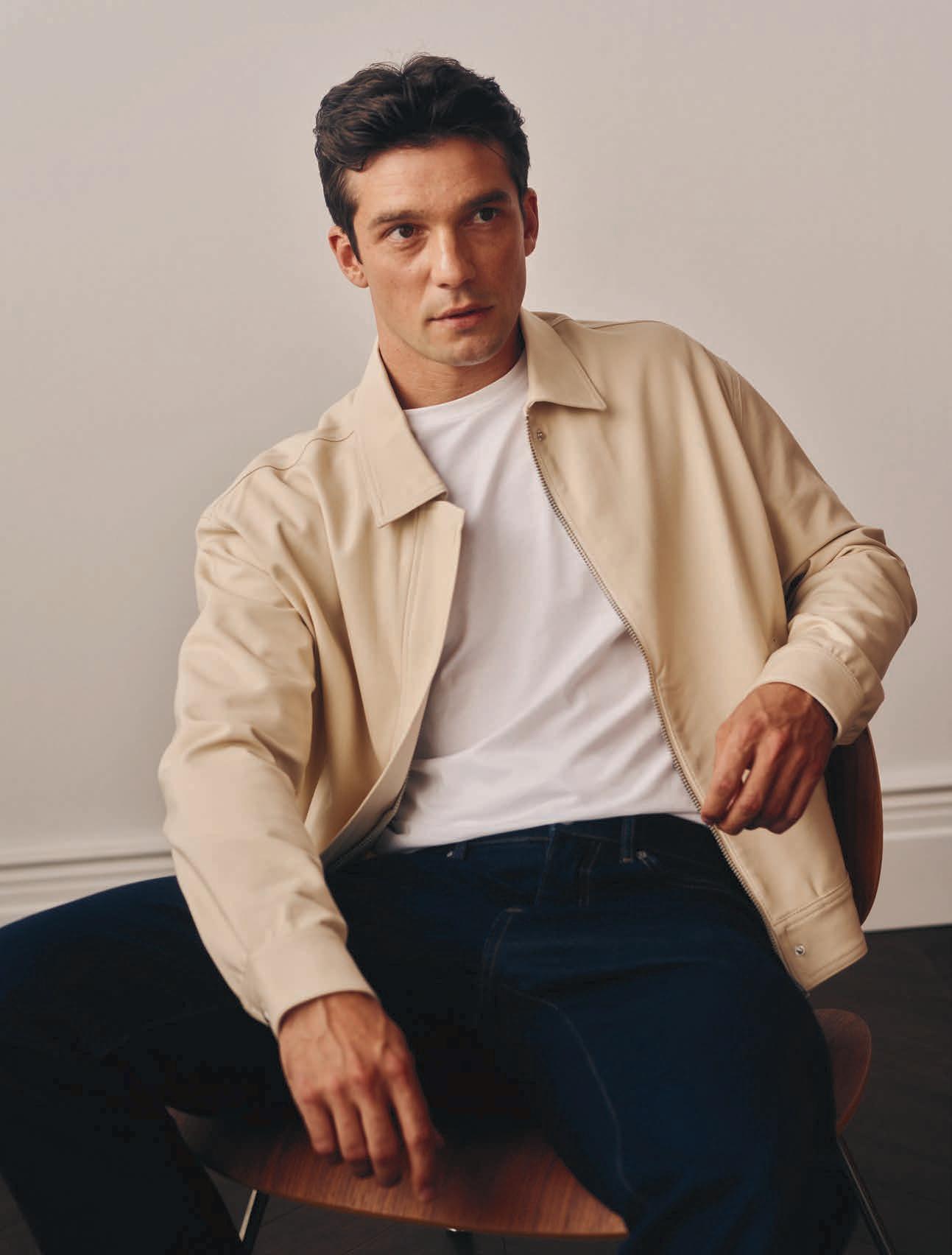 I’m really into jackets and coats in leather or shearling, or mixed-material constructions with an edgier or more refined aesthetic than a standard puffer. I love chunky cable-knit sweaters, turtlenecks, layered cardigans–all types of knit layering pieces, even knit polos. They’re ideal for creating depth and comfort without losing style.