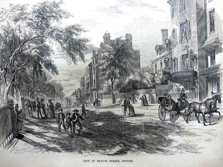 An illustration from the 1850s that shows a view of Beacon Street