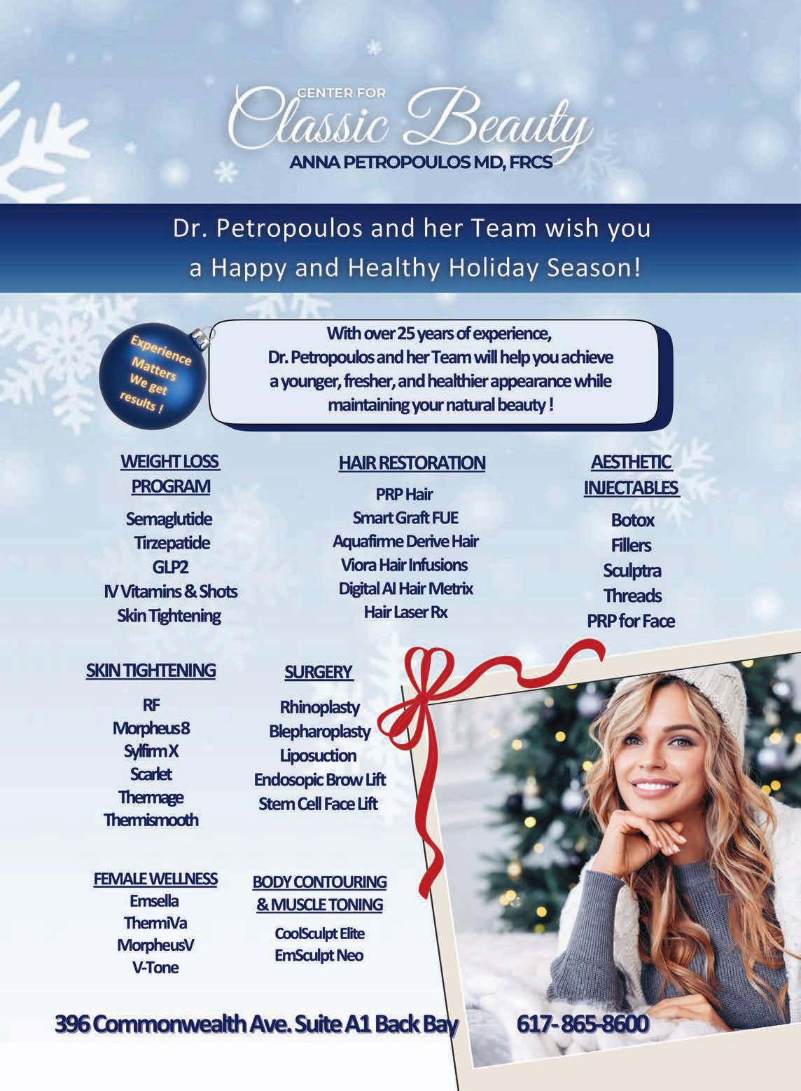 aAS WE ENTER the holiday season and begin our second year of MyBoston magazine, I find myself reflecting on what truly matters—family, friends, and the simple joy of being together. This year, I will be spending time with my family in Europe. That means keeping many traditions, such as baking seven kinds of cookies (yes, seven!), gathering around the table to share good food, cutting an apple to see my lucky star, singing carols, and sharing stories that keep us connected.