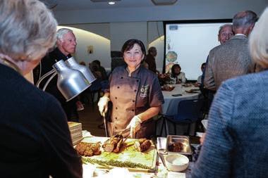 Left: WLP CEO Jennifer Wigon and Kathy Young, co-chair and founding member of the Homelessness Task Force, join Janet Slovin of the task force. Middle: Master Chef Inna Khitrik helps serve at the roast beef carving station. Right: NABB Block Captain Chair Ali Foley, Karen Shine, and NABB President Sue Baker enjoy the festivities.