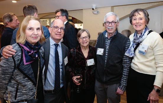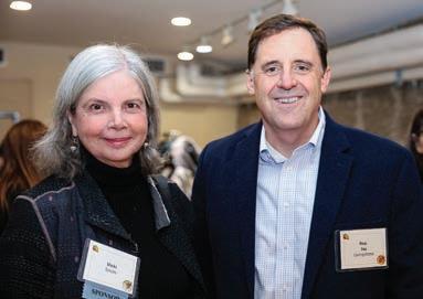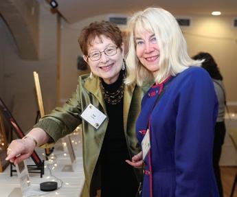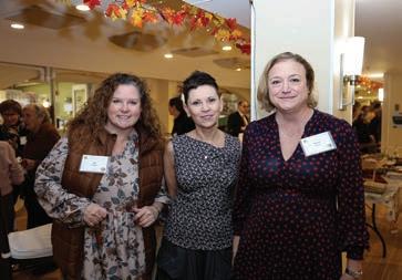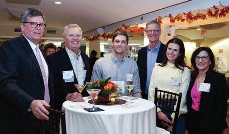 Left: Vicki Smith, co-founder of the NABB Homelessness Task Force in 2019, with Jay Livingstone, state representative, 8th Suffolk district. Middle: Harvest Festival Committee member George Lewis (left) meets the family and friends of Debra Bulkeley, chair of the Harvest Festival Committee, as they raise a toast to her. Right: NABB Special Events Chair Gail Laffer and NABB board member Ellen Rooney delight in the unique auction items suitable for holiday giving.