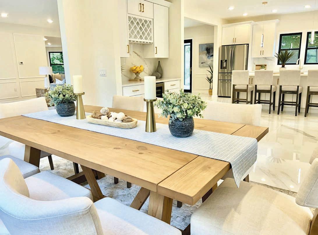 If we can work them into the design plan, yes. If homeowners are living in the home, we try to use their sofas and area rugs and will provide accessories, artwork, and some smaller pieces of furniture if needed. We want to create a cohesive space that feels put together and functional.