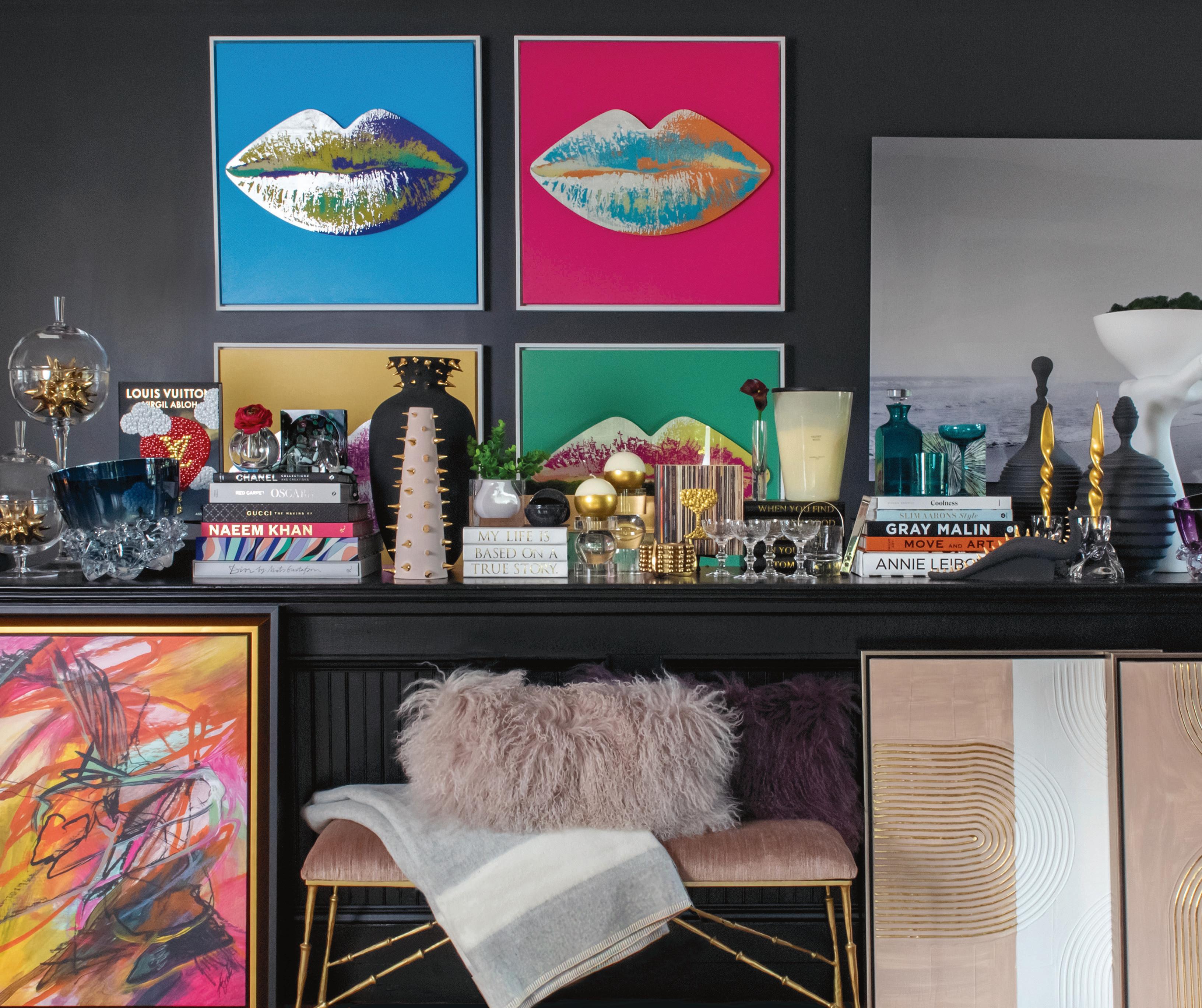 The space is enlivened further by the Johnsons’ large art collection. They decided to take two paintings with them to Jackson but asked King to incorporate the rest of their 50-odd pieces into the design of the townhouse. To that end, she built a partial wall between the entryway and the living area and a series of niches, all designed to display art. A whimsical rendering of an elephant by Roy Lichtenstein, tucked into a niche near the entryway, is emblematic of the spirit of the collection and its placement throughout the house.