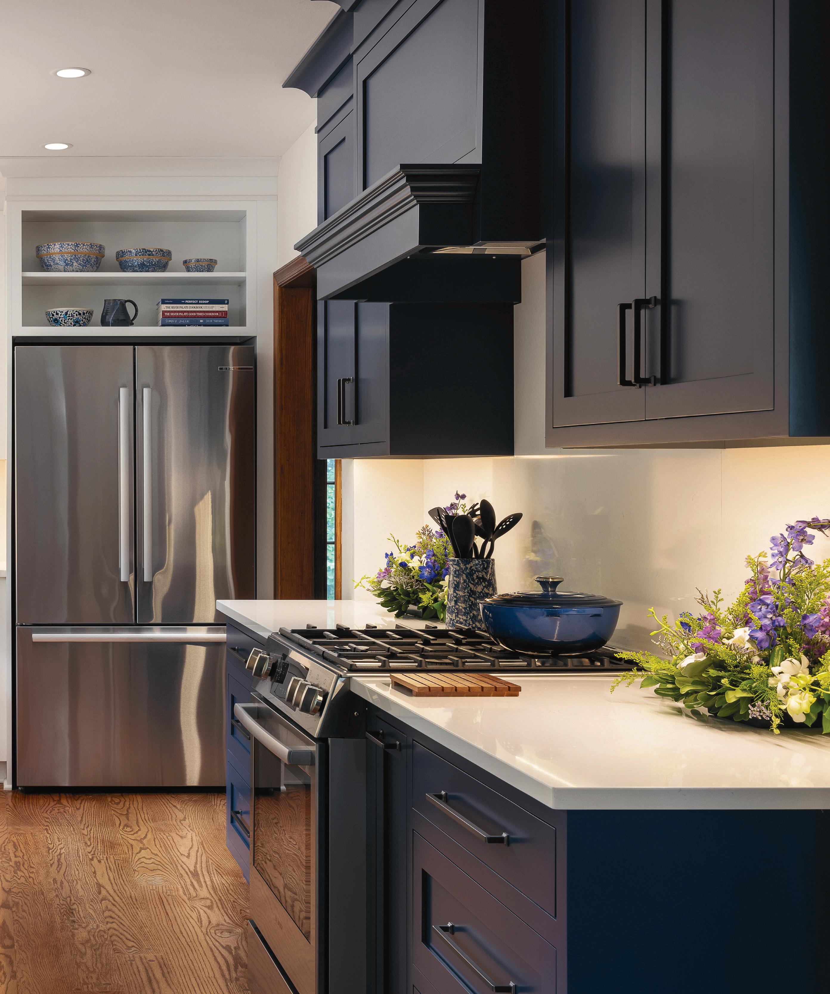 LORI NUZZI HAD LIVED IN THE Ramsey house for 17 years, raising two kids and hosting countless holiday dinners. But by 2020, one child was in college, the other was poised to enter in fall and the kitchen that had fueled all those dinners was looking anything but celebratory. In fact, the entire main floor was begging for a redo. “I was living in a home that somebody else had designed and decorated,” Nuzzi says. Now, facing an empty nest, she wanted to give it what she calls “my own imprint.”