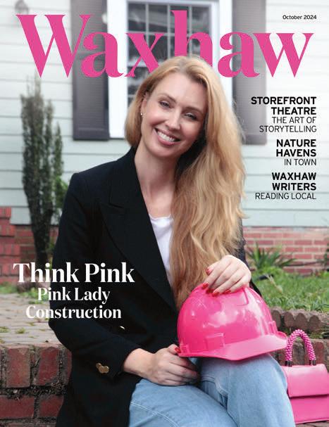 What an exciting fall it’s been here in Waxhaw! The trees are turning, there’s a crisp chill in the air, and pumpkins are everywhere. As we settle into the season, it’s a perfect time to enjoy everything our vibrant community has to offer. This month, Waxhaw Magazine showcases local talent in every corner. In “Spreading the Word with Waxhaw Writers,” we highlight local authors and their brilliant creations. Storefront Theatre brings its artistry to the stage with “Read Between the Lines,” a look at what local theatre means for our town. And be sure to check out Emilia Naberezny of Pink Lady Construction, who adds beauty and grace to every home project she touches.