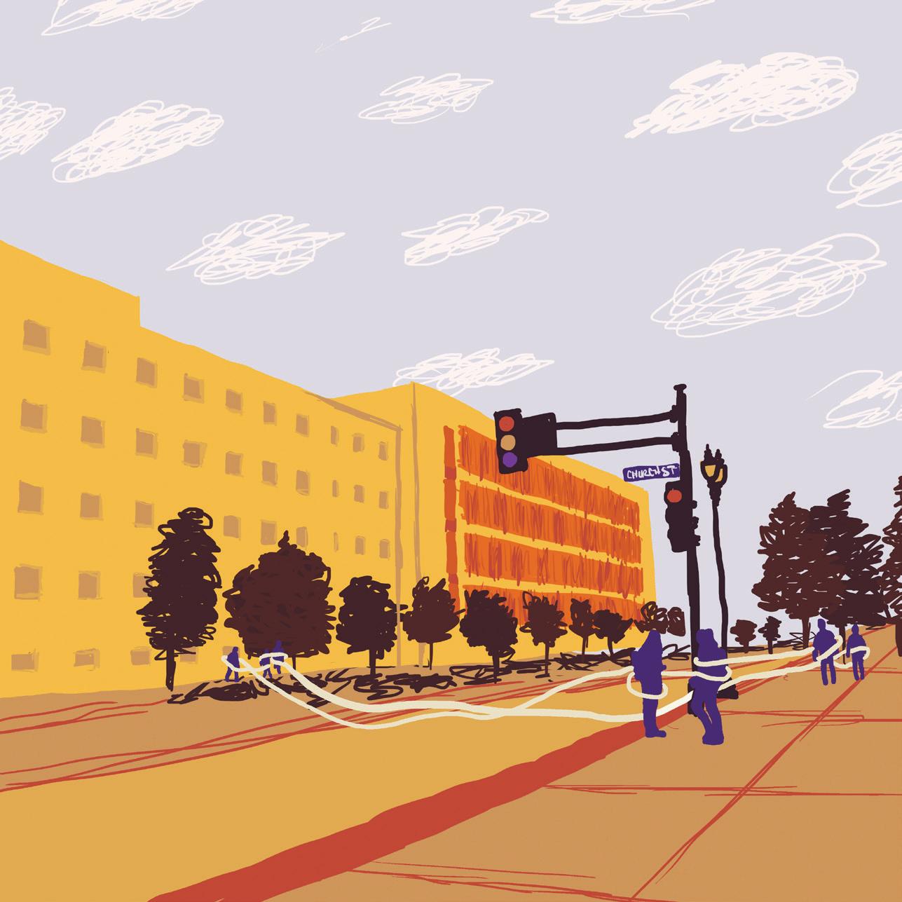 One of my favorite concepts from the “99% Invisible” book that I now carry with me is the idea of desire paths. A desire path is a footpath treaded o any paved walkway. People want to go a certain way and have the free will to ignore the intended program and follow their desire. Over time, as more people use the path, it becomes more visible and therefore more used. Sometimes, these paths are legitimized and paved. One example of this is right outside Rapson Hall’s main entrance. If you exit the building and turn to the right, there is a diagonal path through the landscaping paved with small rectangular stones. Even before learning about the concept of desire paths, I could tell that this was a designer either foreseeing or reacting to the human tendency to take the most e cient path. Yet mere steps away, the landscaping of Northrop Mall clearly intends to block the creation of desire paths. Just look at the northwest corner of Tate Hall; the deliberate line of bushes bisecting the angle of the corner blocks any attempts at cutting across. Understandably, there is a desire to protect the grass, but it also begs to interrogate the di erence between nature which is meant to be looked at and meant to be experienced. Is there really any value in the former?