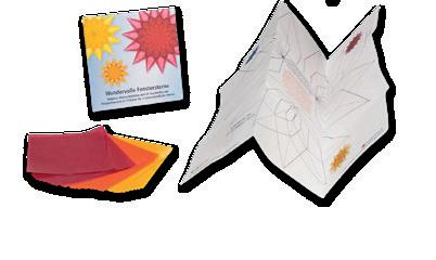 Bastelset mit Pergaminpapier, Faltplan und Schablonen für 6 Sterne Ø 20 cm. Auch als ganzjähriger Fenster schmuck verwendbar. Ab 10 Jahren.