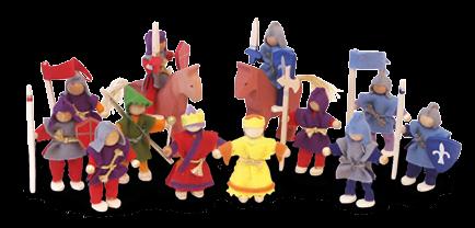 14-teiliges Set. Die Püppchen aus Holz und Filz können stehen, sitzen, klettern und reiten.