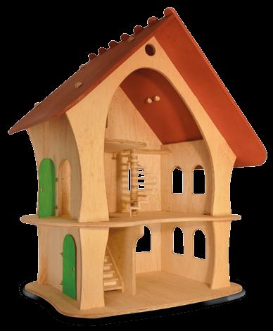 Aus Erlenholz mit abnehmbarem Häuschen und Möbeln für fantasievolles Spielen.