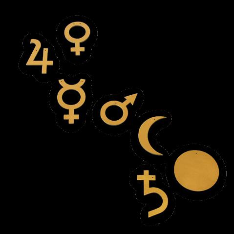 10 Planeten in verschiedenen Formen und Durchmessern, 12 Murmeln, 36 kleine Sterne. In einer hübschen, stabilen Pappbox.
