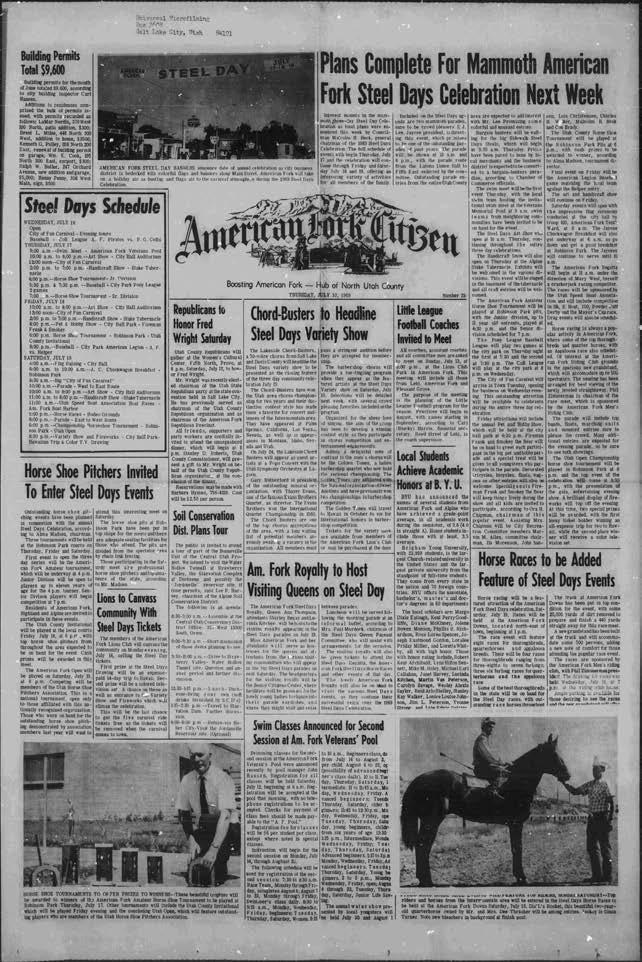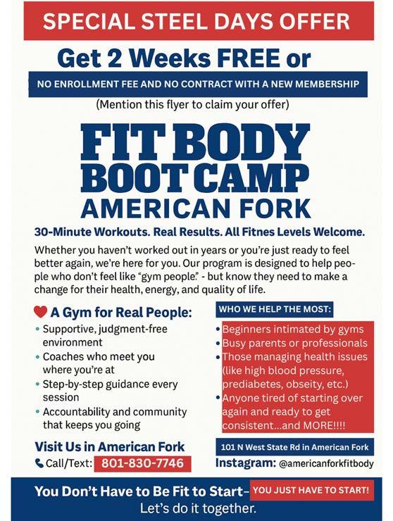 Since our city’s founding in 1853, American Fork has grown in remarkable ways, welcoming new families, expanding opportunities, and investing in the kind of community where people truly want to put down roots Steel Days is our opportunity to pause and celebrate that progress . It’s a time when neighbors become friends, families create lifelong memories, and we all get to experience the strength of our community together .