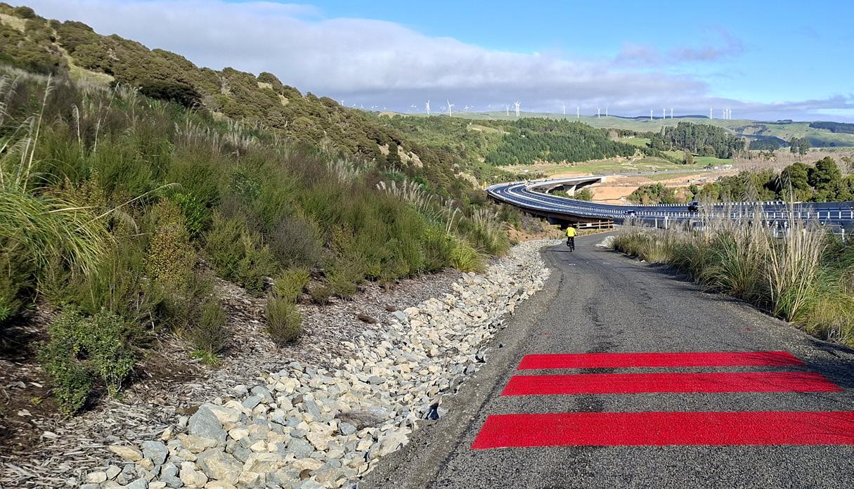 Leaving the bridge behind, the path transitions into a smooth, sealed surface that runs parallel to the highway for about three kilometres. This section is a 10% gradient climb, and as I pedaled upward, I was rewarded with ever-expanding views back over the Manawatū region.
