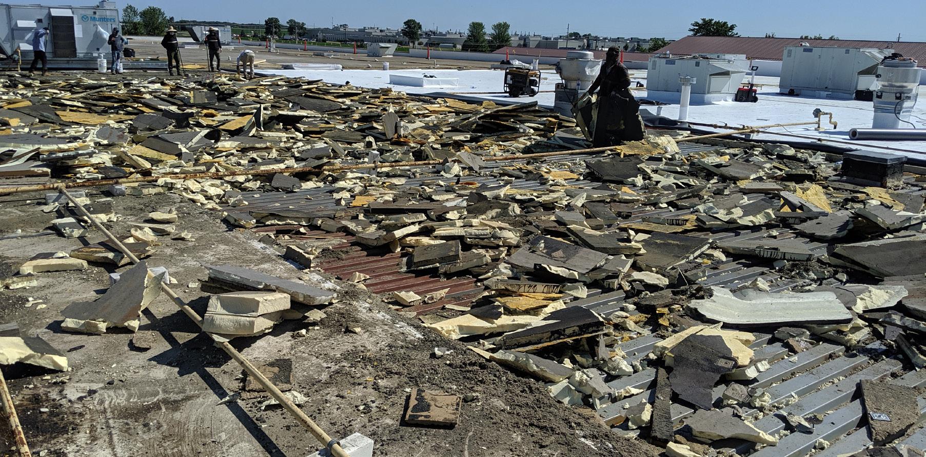 | original roof type: BUR | damage: exposed scrim | solution: verified metal deck capacity and replaced with TPO