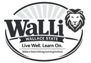 The Wallace State Lifelong Institute (WaLLi) is open to area residents aged 50 and over. For information, call 256.352.7803, email WaLLi@wallacestate.edu, or visit www.wallacestate.edu/WaLLi. NOTE: Schedule is subject to change. Registration will be held on August 14 and 17 from 8 – 11 am in the Walli Classroom. Classes begin Monday, August 17 and end on Tuesday, December 15. There will be no classes on September 7, November 11 or November 23-27.