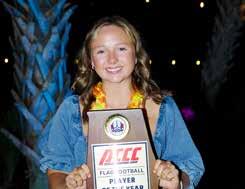 2025 Flag Football ResultsACCC Player & Coach of the YearEmma Kile, left, was named the 2025 ACCC Flag Football Player of the Year and Head Coach Daniel Howard, right, was named the 2025 ACCC Coach of the Year after the Lions’ undefeated season in the league’s inaugural year.
